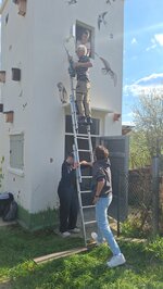 In diesem Jahr haben Schüler in den Artenschutzturm in Dürrenbüchig zwei Kameras eingebaut zur Beobachtung der Dohlen und Fledermäuse. Über eine Standleitung werden die Bilder an Orstverwaltung übertragen und gehen von da ins Internet. Die Technik ist eingerichtet. Wir warten mit Spannung darauf, dass die Tiere den Turm besiedeln.