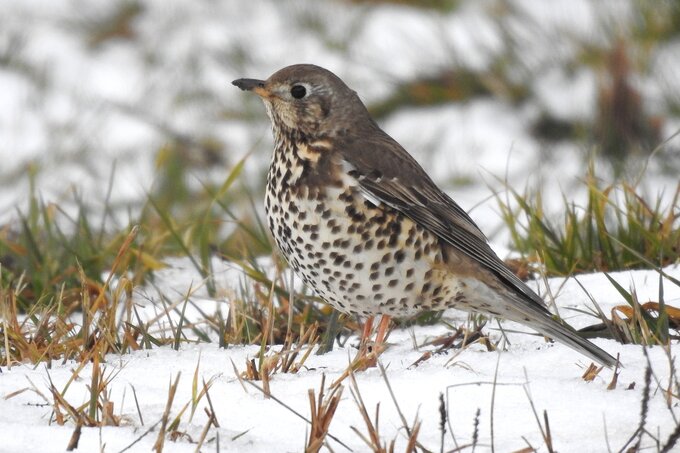 Wenn ein Vogelgesang den nahenden Frühling ahnen lässt, dann ist es der der Misteldrossel (Turdus viscivorus). Ihre kurzen, weithin hörbaren flötend melodiösen Strophen erinnern an die der Amsel. Im Februar und März klingen sie fast etwas verloren in Wäldern und baumreichen Landschaften, wenn die anderen Vogelarten noch weitgehend schweigen. Äußerlich wirkt die Misteldrossel mit ihrer schwarz gefleckten hellen Unterseite wie eine Singdrossel. Im Vergleich ist sie jedoch deutlich größer, hat einen längeren Schwanz, einen kräftigen Schnabel, ein gemustertes Gesicht und sitzt auffallend aufrecht. Im wellenförmigen Flug bringt es die größte Drossel Europas auf knapp 50 Zentimeter Spannweite.