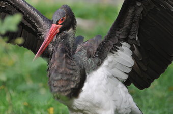 Ein seltener und zurückgezogen lebender Waldvogel ist der Schwarzstorch (Ciconia nigra). Im Gegensatz zu seinem weißen Verwandten meidet er die trubelige Menschennähe und sucht die Ruhe und Abgeschiedenheit der Wälder. Mit dem schwarzen und metallisch grün-violett glänzenden Gefieder, roten Beinen, Schnabel und Augenringen und weißem Bauch ist er unverwechselbar. Klappern gehört bei ihm nicht zum Handwerk: Im Gegensatz zum Weißstorch klappern Schwarzstörche nur selten. Mit 150 Zentimetern Spannweite sind sie exzellente Segelflieger über dem Brutrevier und auf ihren Wanderungen. Diese führen den Langstreckenzieher im Winter bis ins tropische West- und Ostafrika. Meistens beginnt ihre Reise im September einen Monat nach den Weißstörchen.
