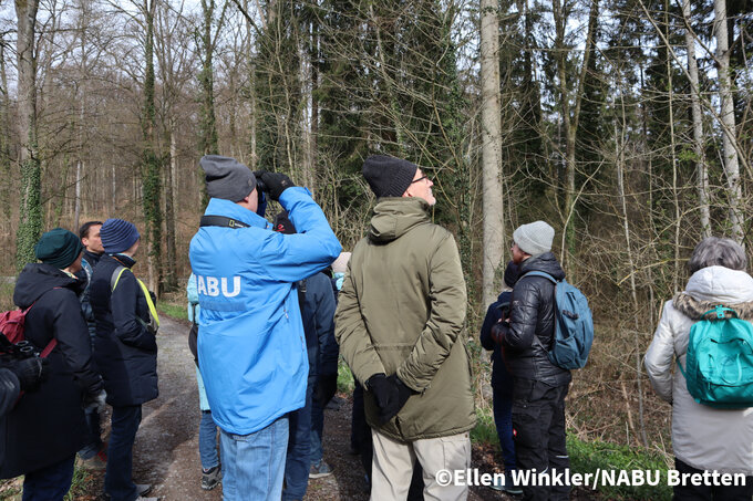 Um 7 Uhr versammelten sich über 20 Teilnehmer bei zwar sehr kaltem, aber trockenem und windstillem Wetter beim Tierpark Bretten. Eberhard Körner und Jannik Stipp nahmen uns mit zu einer abwechslungsreichen Runde in ein reines Waldgebiet mit recht hohem Nadelholzanteil. So ergab sich einerseits ein engeres Artenspektrum, gleichzeitig konnten wir dadurch dieselbe Art immer wieder neu hören und die charakteristischen Gesänge verinnerlichen.