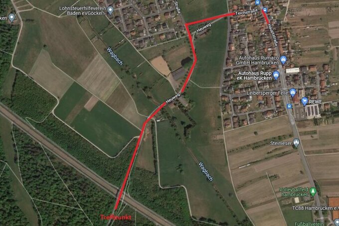 Starten wollen wir um 09:30 Uhr beim Treffpunkt nach der Bahnbrücke (siehe Bild).