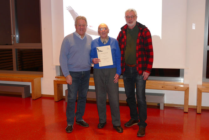 Auf der Jahreshauptversammlung des NABU Bretten wurde Gerhard Fritz für seine vielfältigen Tätigkeiten der letzten Jahrzehnte geehrt. Der Vorsitzende, Norbert Fleischer, lobte ihn als echten „Naturschutzmacher“, der nicht nur über Biotope redet, sondern sie am liebsten selbst, zusammen mit den Mitgliedern, anlegt. Zudem war er viele Jahre 1. bzw 2. Vorsitzender und ist heute Beisitzer. Für die geleistete Arbeit wurde er bereits von der Stadt Bretten ausgezeichnet und erhielt vom NABU-Bundesverband die Goldene Ehrennadel. Nachdem Hans-Otto Gässler, als Gründer des NABU Bretten, vor einigen Jahren zum 40 jährigen Bestehen zum Ehrenvorsitzenden ernannt worden ist, wählten die Mitglieder jetzt Gerhard Fritz ihren „Naturschutzmacher“ mit großer Mehrheit zum Ehrenvorsitzenden.